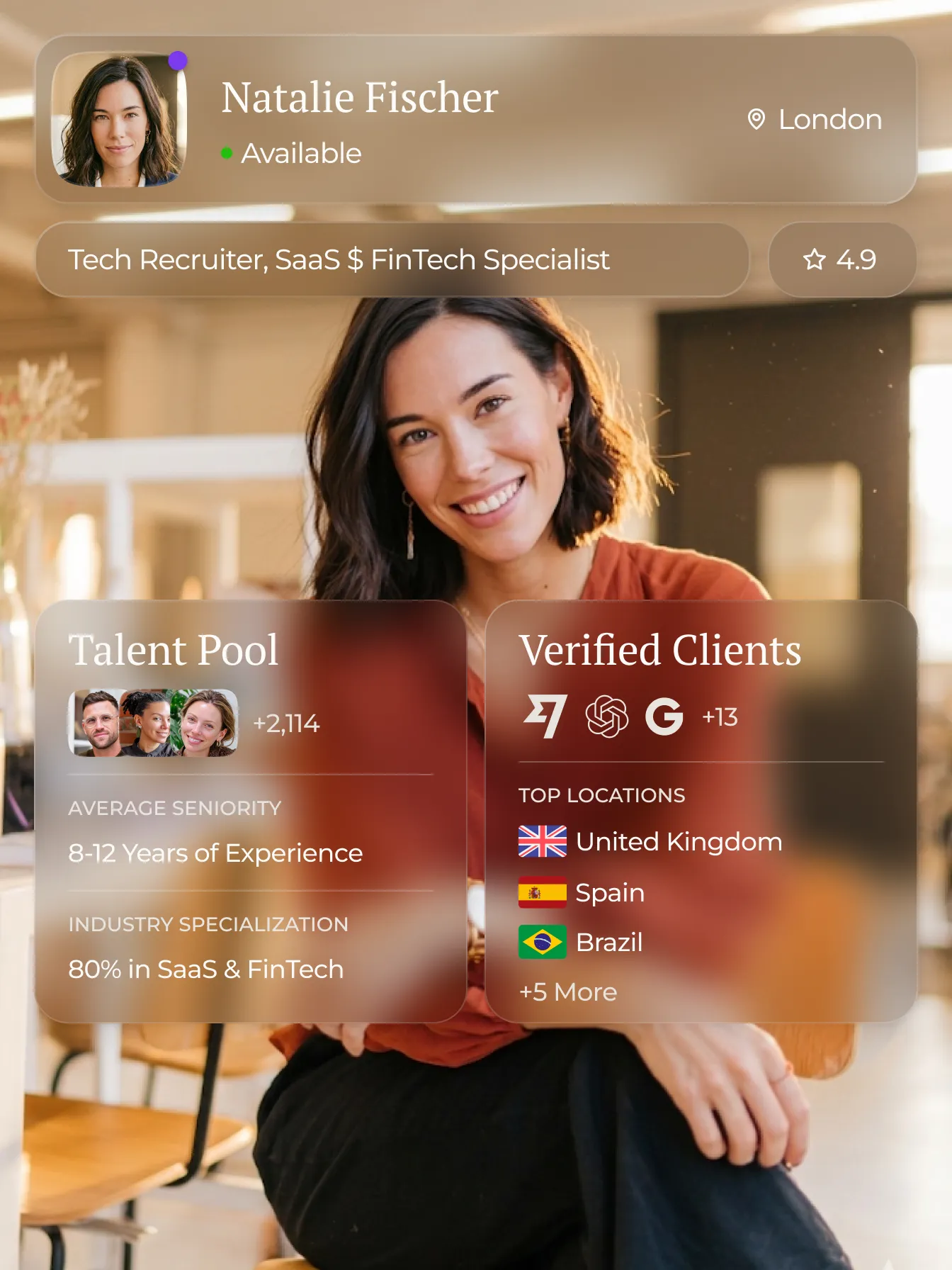 Your profile highlights specialisms, proof points, and outcomes; reviews and marketplace visibility help companies and candidates understand why you—not a generic agency—are the right partner.